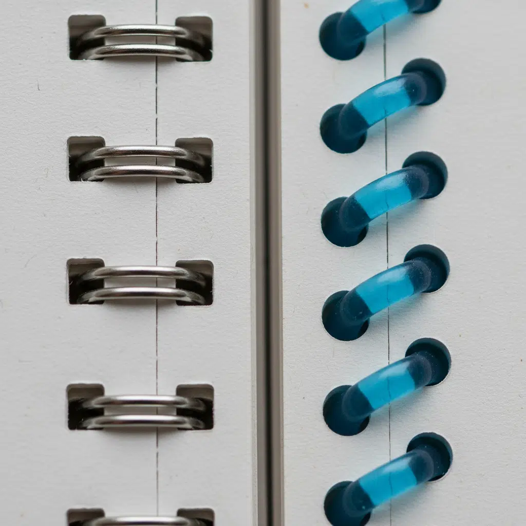 • Spiral: Because the coil travels in a helix, the left page is always slightly higher or lower than the right page when the book is open. This creates a “step” effect. Designers should avoid critical crossovers in spiral-bound documents to prevent misalignment.