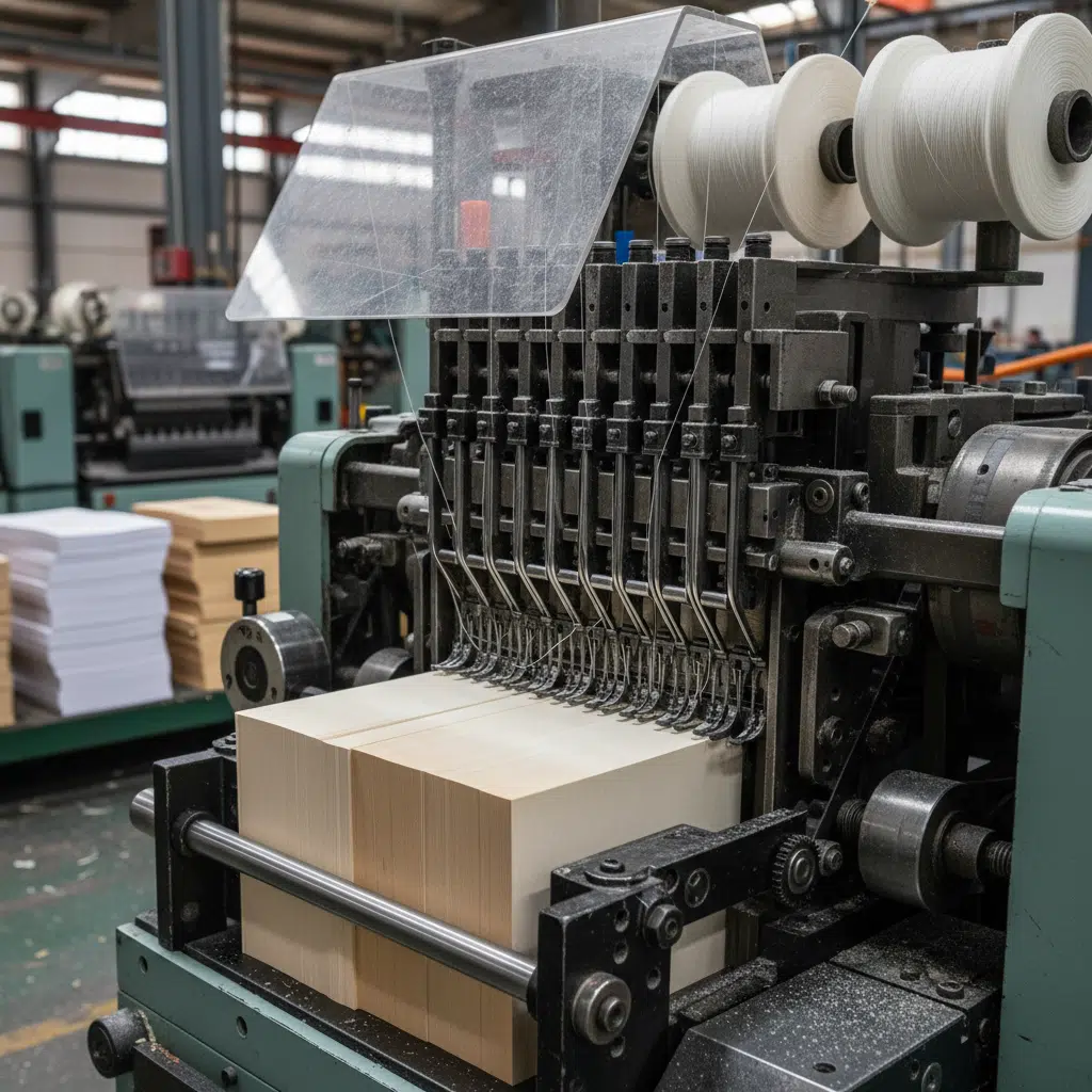 For textbooks that exceed 300 pages or require heavy handling, standard glue binding may not suffice. In this process, signatures (groups of folded pages) are sewn together with thread before the cover is glued on. This is often referred to as “burst binding” or “Smyth sewn” depending on the specific technique.